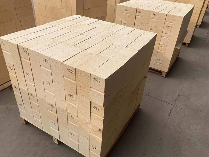 中國(guó)的粘土磚Al2O3含量一般多在40%以上,F(xiàn)eO含量小于2.0~2.5%。配料中熟料為65~85%,結(jié)合粘土為35~15%將粉碎的結(jié)合粘土和磨細(xì)的熟料混磨,再與顆粒熟料一起配制成半干泥料,高壓成型,在約1400下燒成,性能較好。